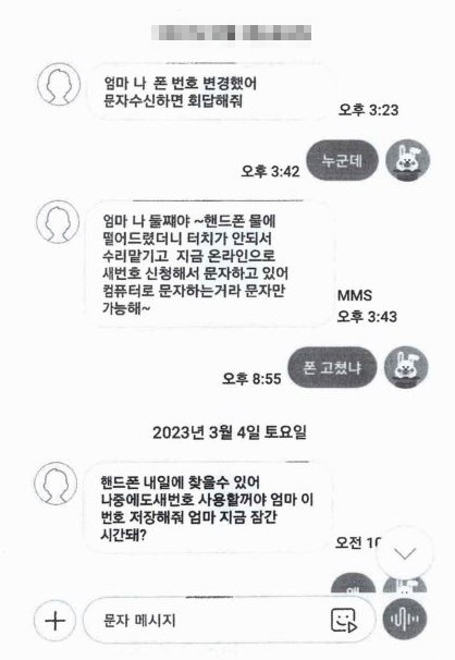 주요 피해 사례를 보면 지난 3월 B씨는 “엄마, 핸드폰 떨어뜨렸더니 터치가 안 돼 수리 맡기고 파손보험 신청해야 되는데 도와줄 수 있어?”라는 문자 한통을 받았다.
