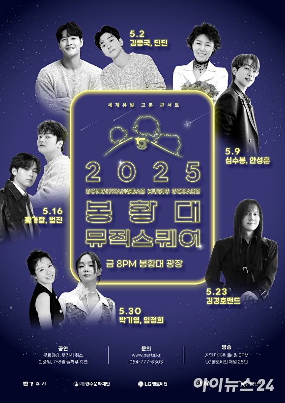 한편, 공연은 야외 특성상 기상 상황에 따라 일정이 변경될 수 있으며, 자세한 일정과 출연진 정보는 경주문화재단 홈페이지에서 확인 가능하다.
