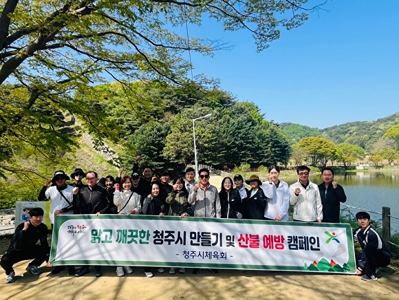 [아이뉴스24 윤재원 기자] 충북 청주시체육회(회장 김진균)가 창립 기념일인 28일, 청주 상당산성 일원에서 맑고 깨끗한 청주 만들기와 산불예방 캠페인을 했다.